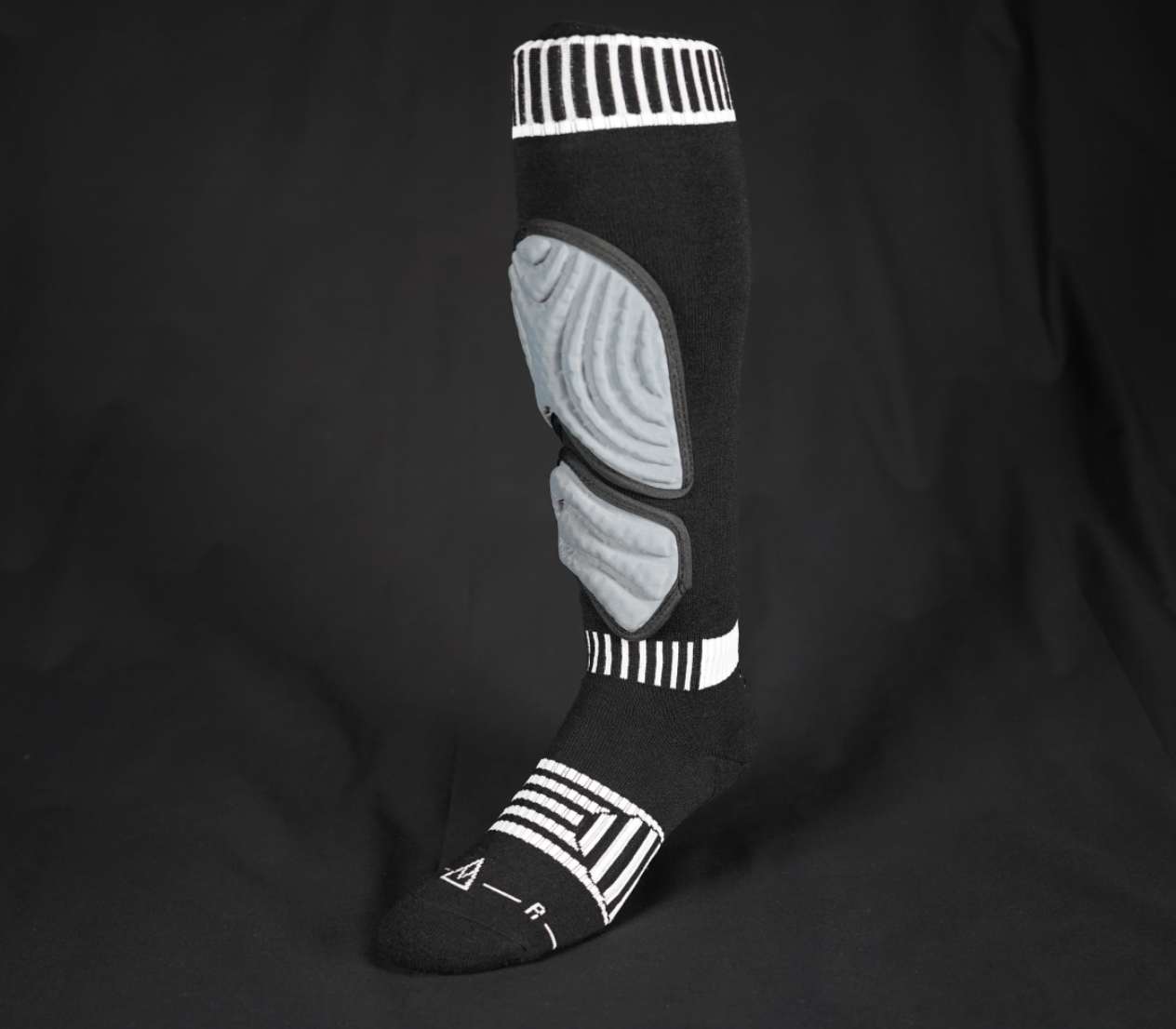 Developed by Physicians and Ski Professionals, this two-piece shin pad is a game changer. The double-sided 3-D design enables the shin to distribute large forces to the correct anatomical locations. No more shin-bang, heightened control, and increased blood-flow enable the skier to perform to their max and be more comfortable.